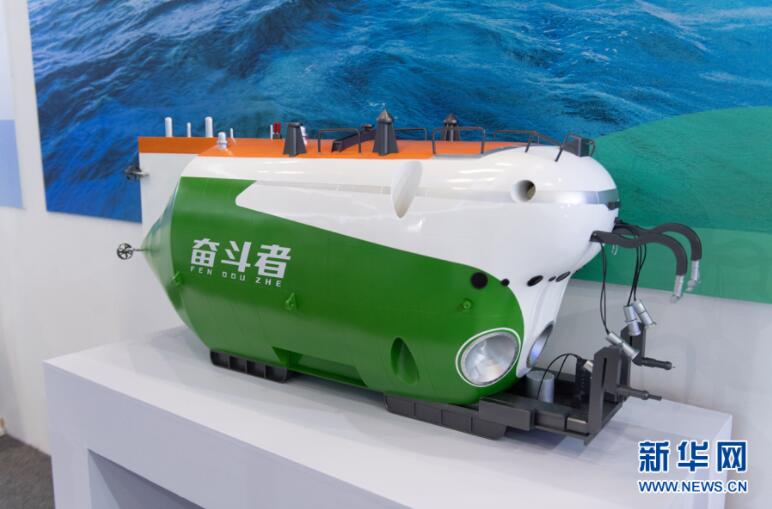 中國科學(xué)院金屬研究所が出展した有人深海潛水艇「奮闘者」。撮影?耿駿宇