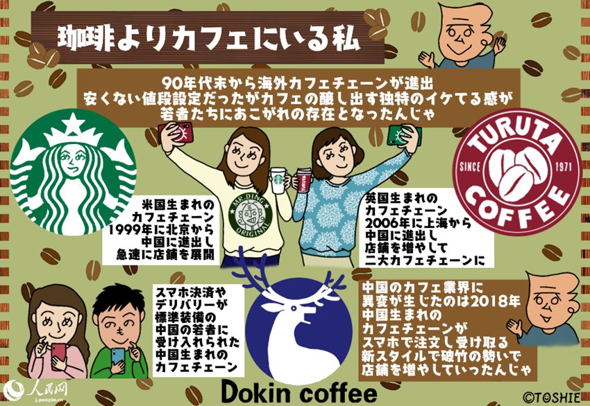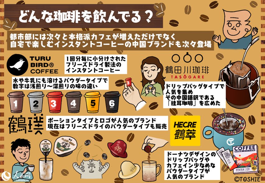 中國におけるコーヒーの「あの茶色くて苦いやつ」からの目覚ましい変化は、この國の経済を始めとする様々な面での発展と同じようにスピーディで劇的というにふさわしい。この記事を書くにあたり、私も早速ネットで話題のフリーズドライ製法による小分けタイプのインスタントコーヒーを注文した。今はその到著を楽しみに待っているところだ。(文?イラスト?玄番登史江、袁蒙)。