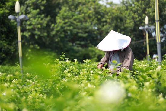 世界中にあるジャスミンの花は、10個(gè)のうち6個(gè)が広西壯(チワン)族自治區(qū)橫州市産だ。橫州のジャスミン栽培の歴史は、文書の記録によると400年以上にのぼる。この中國西南部の都市で生産されるジャスミンは香りが強(qiáng)く、開花期が長く、蕾が大きく、生産量が多く、品質(zhì)が高いといった長所がある。橫州市の昨年のジャスミン栽培面積は12萬ムー(1ムーは約6.7アール)、花農(nóng)家は約33萬人、ジャスミンの生花の年間生産量は9萬5000トン、ジャスミンティー生産企業(yè)は130社以上、ジャスミンティーの年間生産量は8萬トン弱にのぼる。名実相伴う「中華ジャスミンの里」だ。