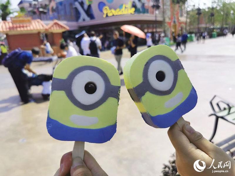 ミニオン?ランドでは、遊ぶ、食べる、買う、寫真を撮るといったことを一通り楽しめる。ここで売られているミニオンのアイスは40元。