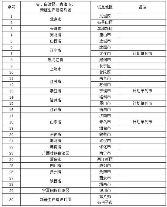 第一陣の試行地は、都市の自発的な申請(qǐng)をベースにして、商務(wù)部が関連當(dāng)局と連攜し、専門家が各都市の申請(qǐng)資料を?qū)彇摔筏七x出された。30ヶ所には北京市の東城區(qū)、石景山區(qū)、上海市の長寧區(qū)、普陀區(qū)、福建省の福州市、廈門(アモイ)市、四川省の成都市などが選ばれた。(編集KN)
