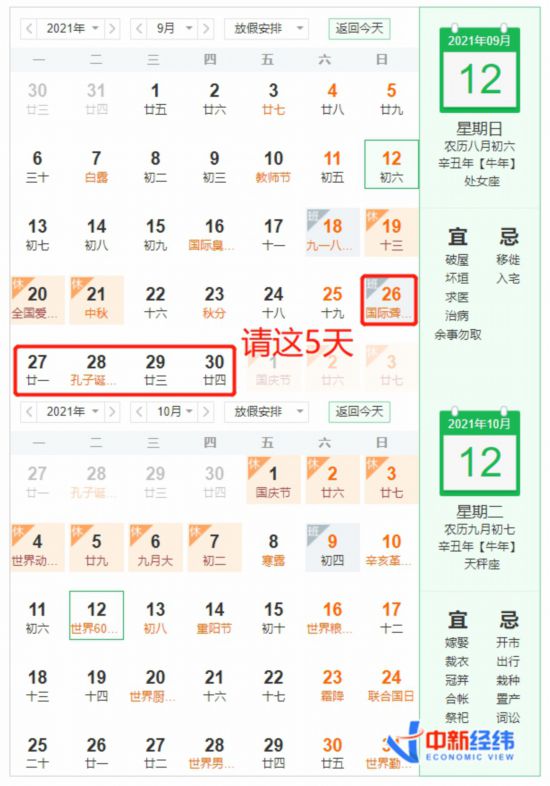 9月26日から30日に休暇った場(chǎng)合は9月25日(土曜日)と繋げれば、13連休になる。