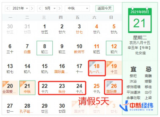 今年は中秋節(jié)に合わせて9月19日から21日までが3連休となり、9月18日(土曜日)は振替出勤となっている。3連休は短距離旅行にぴったりで、18日、22日から24日、26日(振替出勤日)の5日間の休暇を取れば、25日(土曜日)と合わせて9連休という長(zhǎng)期休暇にすることもできる。