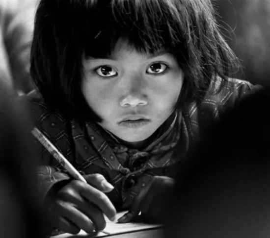 大多數(shù)の中國(guó)人はこの寫真に見(jiàn)覚えがあるだろう。モノクロの寫真の中で、少女は粗末な服を著て、髪は亂れたままで、小さな手に鉛筆を握って機(jī)の前に座っている。表情はおずおずとしていながらも、澄んだ純真な大きな瞳がこちらをじっと見(jiàn)つめているようで、何かを強(qiáng)く求める光を放っている。