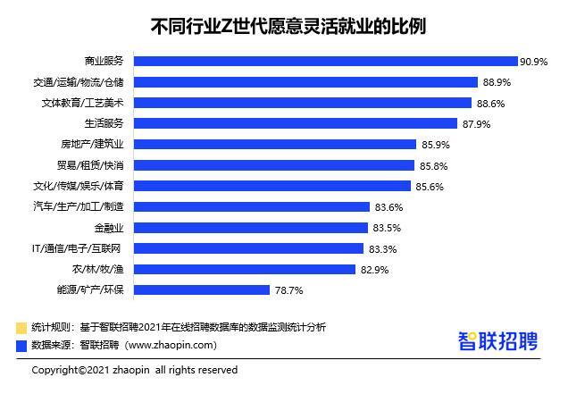 異なる産業(yè)における「フレキシブルワーク」希望のZ世代の割合。(畫像提供は智聯(lián)招聘)