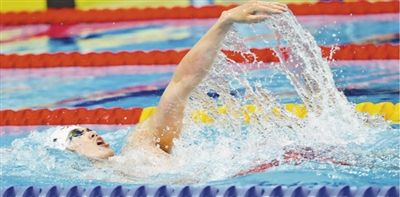 男子400メートル個(gè)人メドレーの決勝中の汪順選手。