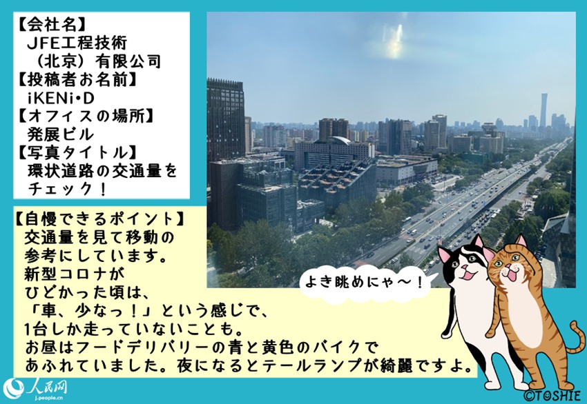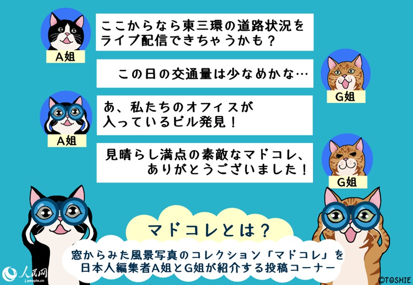 ウチのオフィスの窓からはこんな風(fēng)景またはこんなモノが見えると自慢していただく「マドコレ(窓から見た風(fēng)景コレクション)」。どこまでも続く青い空、遠くに見える山々、または階下を往來する人々の人間模様など、オフィスの窓から眺める風(fēng)景はそれぞれ。人民網(wǎng)日本人編集者のA姐とG姐が皆さんから投稿いただいた寫真にコメントしながら、「マドコレ」を紹介していきます!
