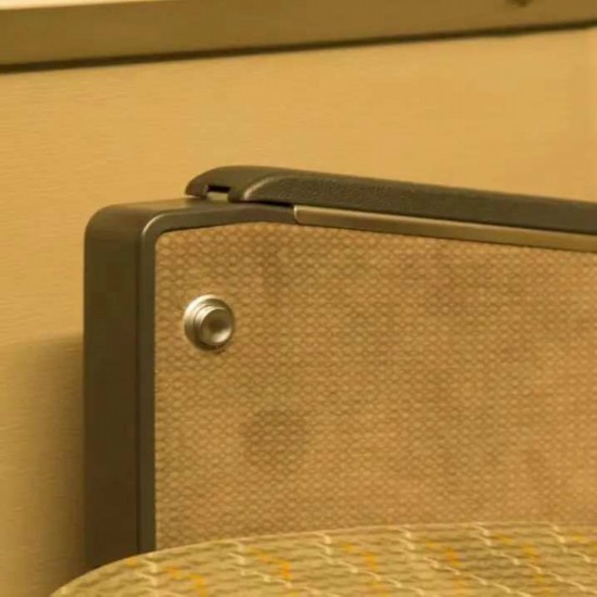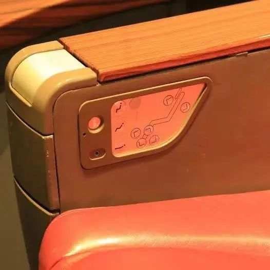 一等席の場(chǎng)合、金屬の丸いボタンがひじ掛けの內(nèi)側(cè)に付いており、それを押して、後ろにもたれて倒し、好みの角度になった時(shí)にボタンを放せば固定できる。席を離れる時(shí)に、ボタンを押せば元の位置に戻る。