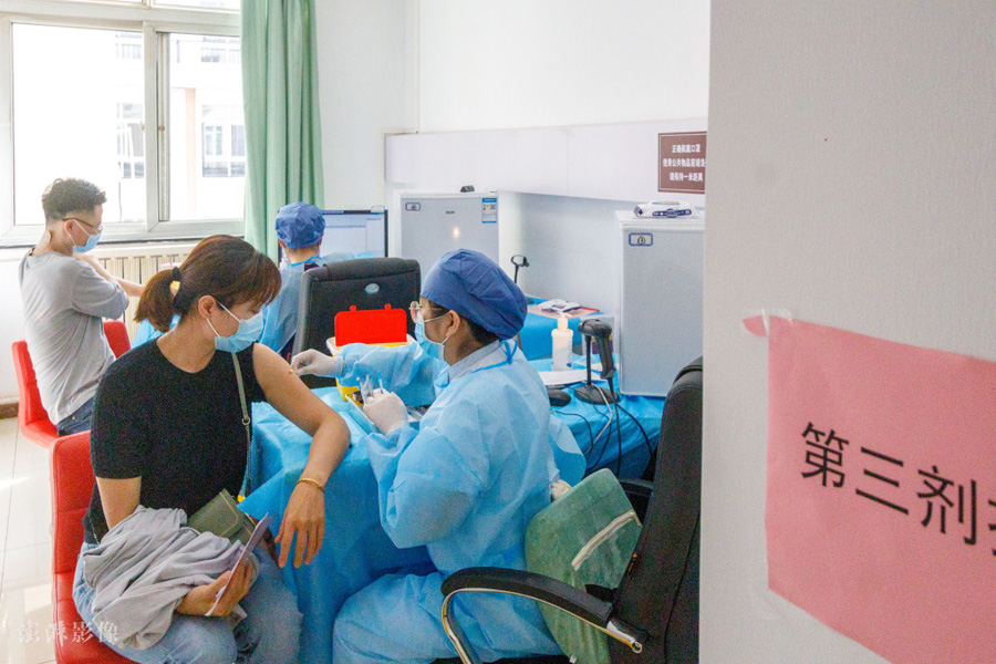 天津市は27日、免疫機(jī)能を強(qiáng)化する目的で、18歳から59歳までの市民を?qū)澫螭趣工胄滦庭偿恁圣铳隶螭?回目の接種(ブースター接種)を開始(寫真著作権は澎湃影像が所有のため転載禁止)。