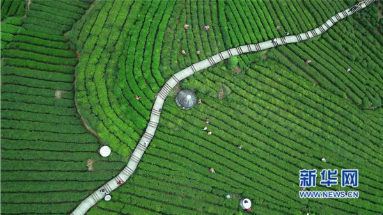 湖北省恩施トゥチャ族ミャオ族自治州宣恩県伍家臺村にある666ヘクタール以上の茶園ではここ數(shù)日、村民らが忙しそうに茶摘みをしている。山に囲まれたこの村の段々畑には美しい緑色の茶の葉が茂り、美しい景色が広がっている。伍家臺村は近年、宣恩県の長い歴史を誇る茶文化と美しい自然というメリットを生かし、茶文化観光エリアを設(shè)置し、2020年に訪問した観光客は延べ62萬4000人に達した。伍家臺村の茶葉の生産高は1億元(1元は約17.1円)に達し、一人當たりの収入は約1萬5000元にまで増加した。(編集KN)