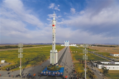 10月7日、移動(dòng)中の有人宇宙船「神舟13號(hào)」とキャリアロケット「長(zhǎng)征2號(hào)F遙13」のコンビネーション(撮影?汪江波)