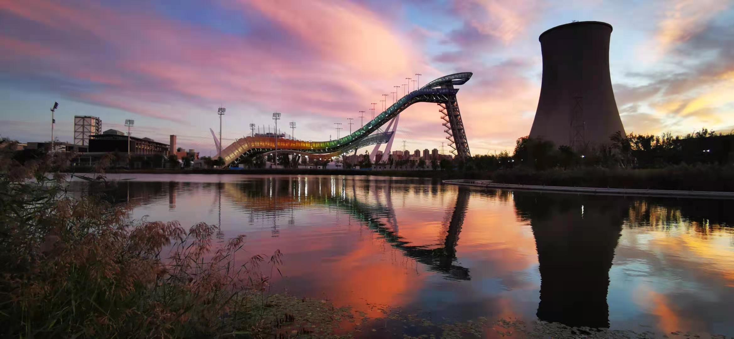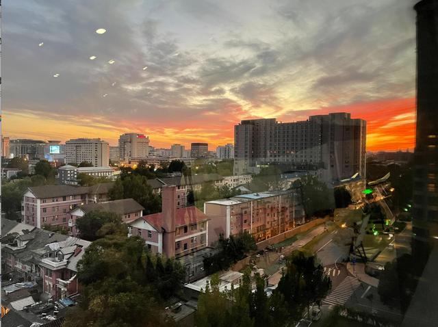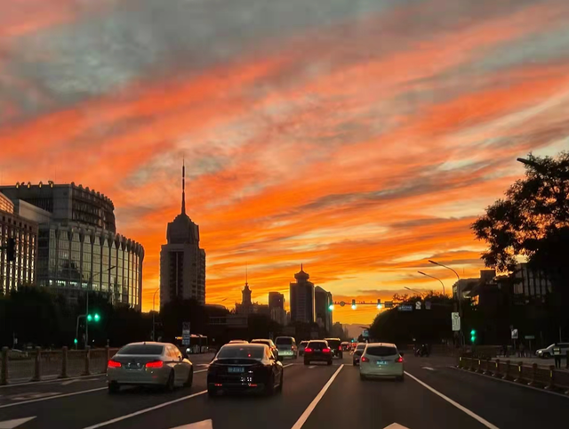 今月10日夕方、北京の空は夕焼けで鮮やかなオレンジ色やピンク色に染まり、息を吞むような美しい景色が広がった。(編集KN)