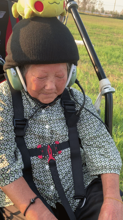 高齢なので敬遠(yuǎn)するだろうと思いきや、この女性は迷うことなくパワードパラグライダーを體験することに同意。家族は「グリップをしっかりと握ってね」とおばあちゃんに話(huà)したほか、インストラクターに「ゆっくりと飛んでほしい」と頼むと、女性は「大丈夫」とにっこりと笑い、カメラに向かってVサインまで見(jiàn)せた。