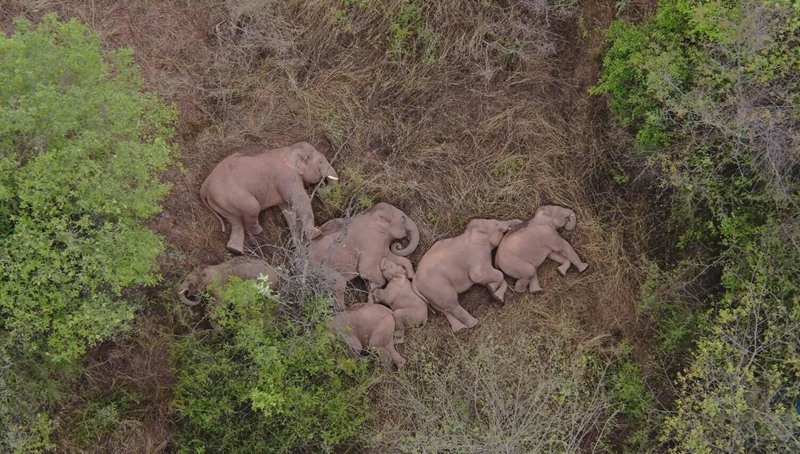 2020年3月、シーサンパンナ?タイ族自治州で生息していたアジアゾウ15頭の群れが北に向かって移動(dòng)し始めた。そして、數(shù)千キロにわたる移動(dòng)の末、17ヶ月経った今年8月に、エサにつられて、生息地に向かってゆっくりと南下するようになった。アジアゾウも人間と同じで、その容貌は個(gè)體によってそれぞれ異なり、「短鼻ファミリー」のうちの1頭の鼻は、他のゾウよりも少し短い。中國科學(xué)院昆明動(dòng)物所の李維薇シニアエンジニアは、「ゾウの群れを識別しやすいように、保護(hù)區(qū)の職員はこの群れを『短鼻ファミリー』と命名した」と説明した。
