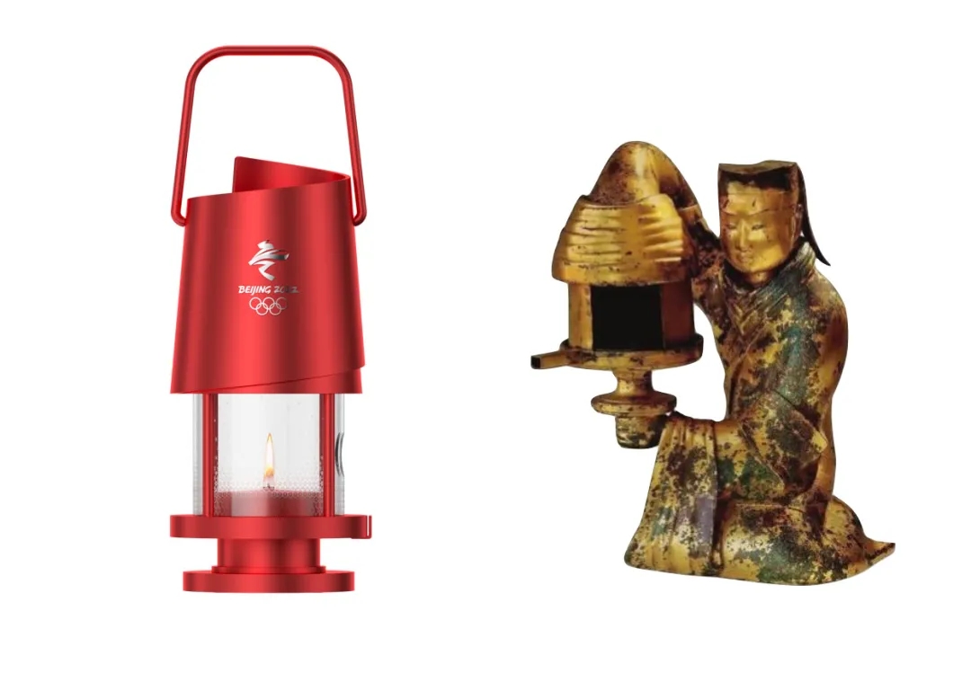 北京冬季五輪聖火リレーの聖火用ランタンのデザインは2000年以上前の前漢(紀元前206年‐西暦8年)の時代の青銅器ランプの長信宮燈をモチーフにしている。長信宮燈の形はコンパクトでありながら華やかで美しいだけでなく、煙で室內(nèi)の空気が悪くならないような工夫が凝らされたデザインとなっている?!搁L信」は、「永遠の信念」という意味で、明るさと希望を願い求める人々の気持ちが込められている。