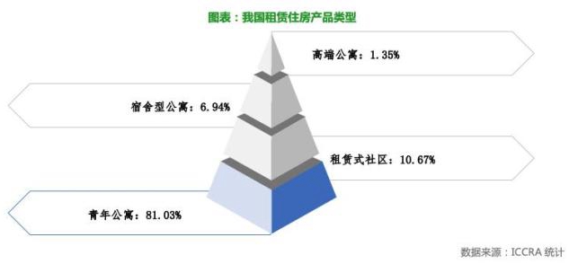 同報告によると、中國の賃貸住宅の累計は全體として明らかな「ピラミッド型」を示し、若者のニーズに応える若者向けマンションの割合が高く、80%を超える。次に新市民のニーズに応えるのは賃貸型団地で10%以上を占める。企業(yè)の末端社員向けの宿舎型マンションは8.62%、高級マンションはわずか1.35%だという。
