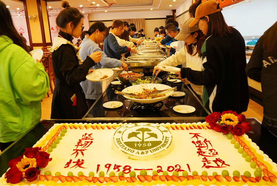 浙江農(nóng)業(yè)林業(yè)大學(xué)西徑食堂では今月中旬から新たに「生態(tài)ビュッフェ」なるメニューが登場(chǎng)した。このビュッフェでは溫かい料理が12種類、冷菜3種類、スープ2種類、粥2種類、フルーツ2種類のほか、各種主食とドリンクが提供される。料理の品數(shù)が豊富なだけでなく、その価格も1人で19.9元(1元は約17.9円)、2人ペアで予約した場(chǎng)合は、1人14.9元とリーズナブルで、完食することがその條件となっている。このビュッフェメニューは登場(chǎng)と同時(shí)に、教師や學(xué)生から高い人気を誇っている。毎回300人分限定で提供され、オンラインで予約する仕組みとなっているが、予約受付開始からわずか數(shù)分で「完売御禮」になるのだという。(編集KM)