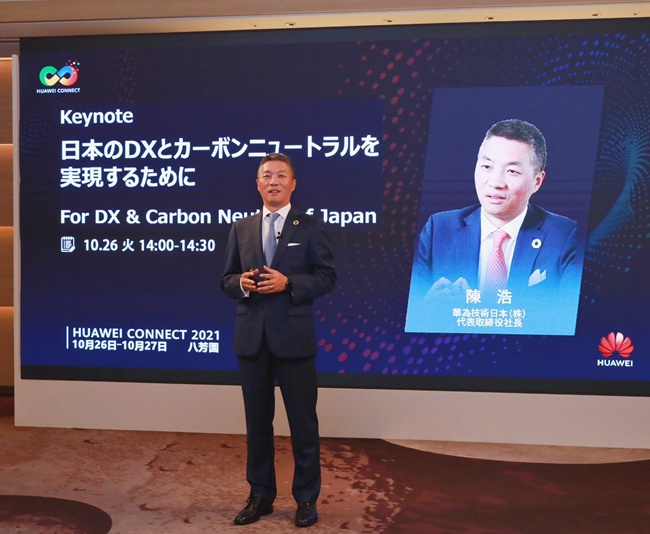 華為技術(shù)日本株式會(huì)社(ファーウェイジャパン)の陳浩代表取締役社長(zhǎng)は基調(diào)講演を行い、「グローバルな経験や知見(jiàn)を生かしたサービスを日本のお客様とパートナー様に提供し、日本のデジタル化の支援とカーボンニュートラルの推進(jìn)に貢獻(xiàn)します」と述べ、ファーウェイの世界での経験を結(jié)集して、日本のデジタル化を支援し、カーボンニュートラルを推進(jìn)することへの意欲を示した。