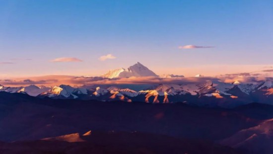朝日を浴びて金色に輝くチョモランマの絶景。