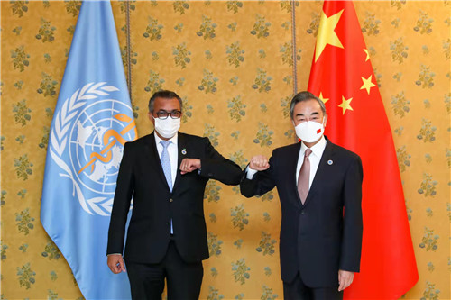 テドロスWHO事務(wù)局長と會談する王毅部長