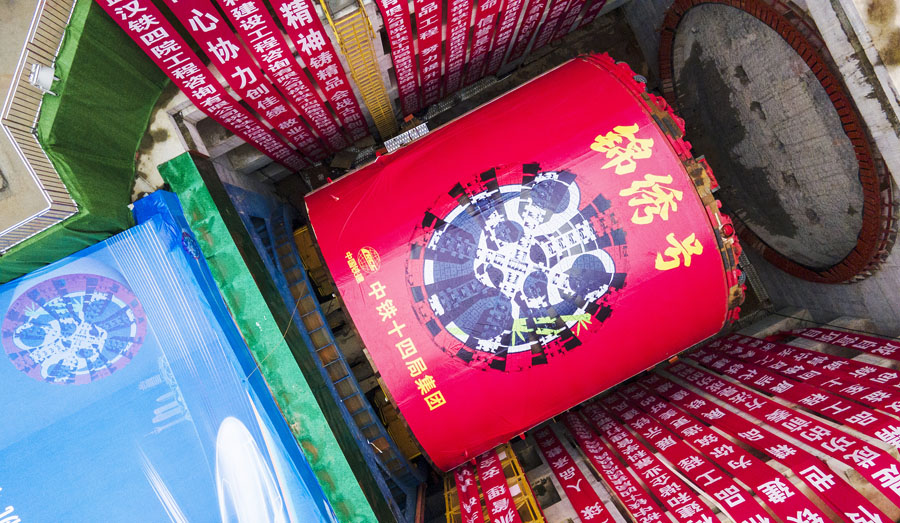 11月1日、四川省成都市で上空から撮影した成自高速鉄道錦繍トンネルのシールド工事現(xiàn)場(寫真著作権はCFP視覚中國が所有のため転載禁止)。