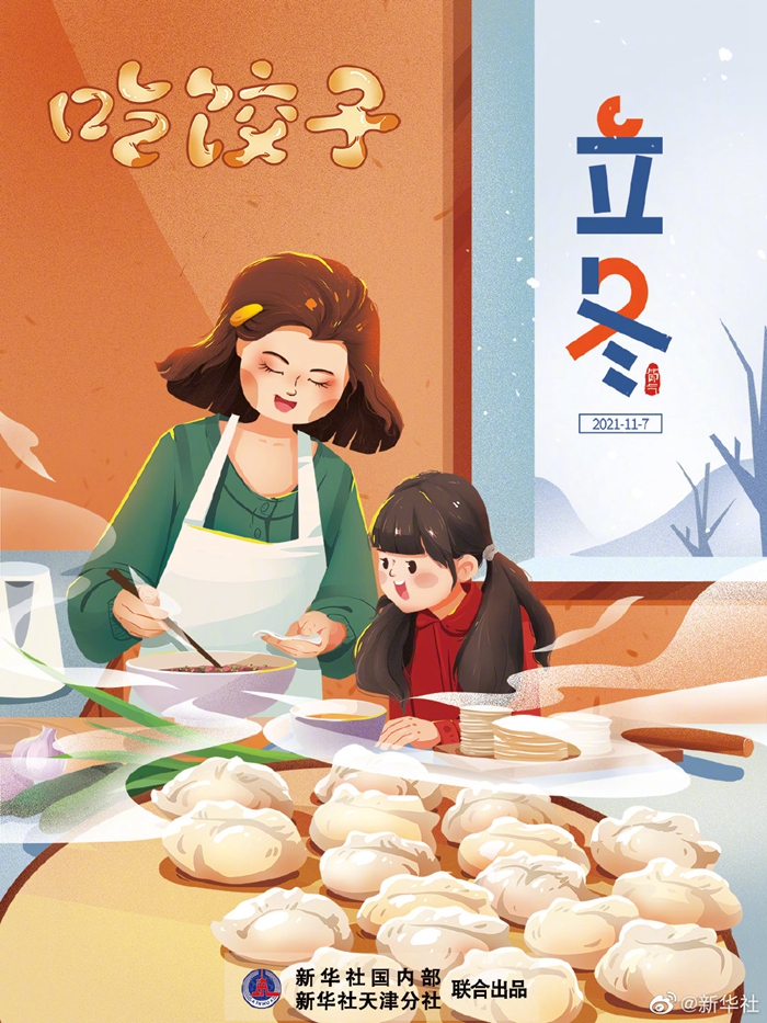 中國の北方エリアには「立冬」の日に餃子を食べる習(xí)慣があり、俗に「立冬に餃子を食べないと、耳が凍ってしまっても誰も助けてくれない」と言われている。これは中國では一般的に、身體のどこかに調(diào)子の悪いところがあれば、動物などのその部位を食べたり、補(bǔ)いたいところがあれば、それと同じ形の食べ物を食べると良いと言われているためで、餃子の形は耳に似ていることから、厳しい寒さの冬に耳が凍ってしまわないようにするため、北方エリアでは立冬の日に餃子を食べる習(xí)慣があるのだという。