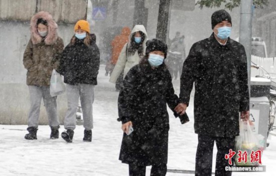 11月7日、雪が降る北京市內(nèi)を歩く市民(撮影?毛建軍)。