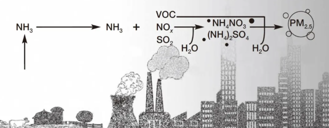 谷氏のチームの研究は、アンモニアのPM2.5形成における影響力が過小評価されているとし、「以前は汚染物の重要性を計(jì)算する際に、往々にして質(zhì)量比によって分析していた。これにより質(zhì)量がPM2.5全體の10%未満のアンモニアが見落とされた。そこで我々は化學(xué)反応のモル比で問題を見直した。データモデルにより、アンモニアの排出がゼロでいかなる化學(xué)反応にも加わらない場合、PM2.5が約40%減少することが分かった」としている。