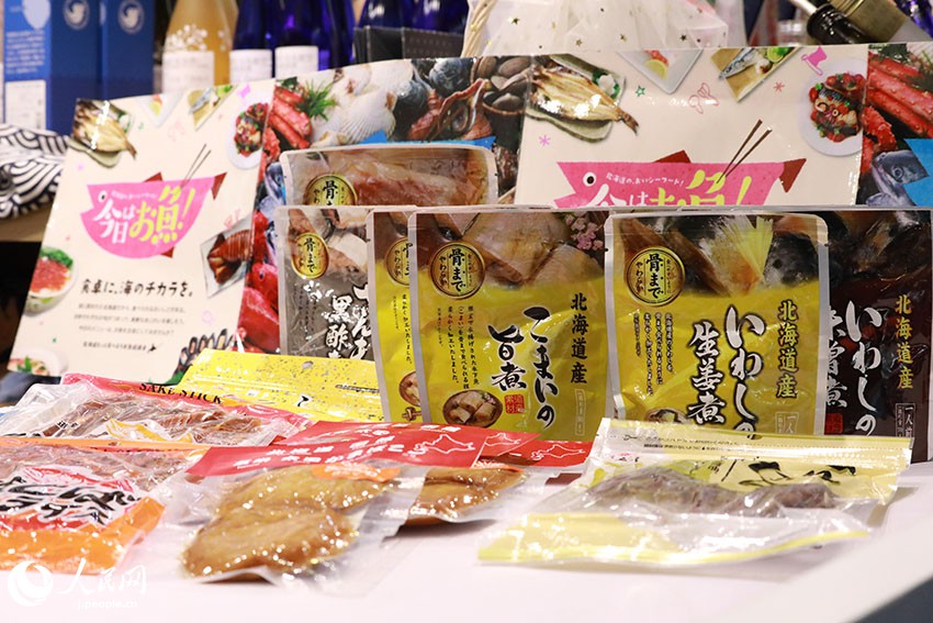 今回初めて出展された北海道の水産品を加工した商品(撮影?張麗婭)。