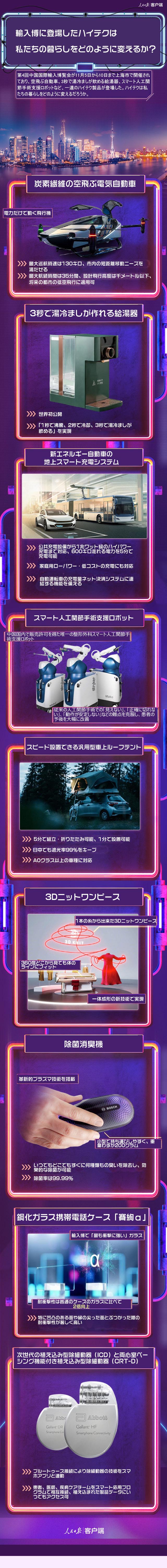第4回中國國際輸入博覧會(以下、輸入博)が11月5日から10日まで上海市で開催されており、空飛ぶ自動車、3秒で湯冷ましが飲める給湯器、スマート人工関節(jié)手術(shù)支援ロボットなど、一連のハイテク製品が登場した。ハイテクは私たちの暮らしをどのように変えるだろうか。