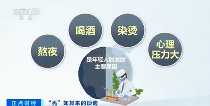 中國の調(diào)査會社?艾媒諮詢(iiMedia Research)の統(tǒng)計によると、中國の抜け毛に悩む人の數(shù)は累計2億5千萬人に達しており、その平均年齢は30.1歳となっている。また、抜け毛に悩む人のうち30歳以下の人の割合は69.8%に上っており、抜け毛の若年化の傾向が顕著となっている。