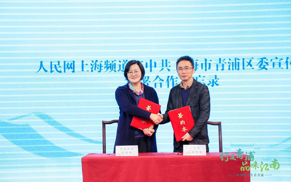 協(xié)力覚書に調(diào)印した人民網(wǎng)上海チャンネルと中國共産黨青浦區(qū)委員會(huì)宣伝部