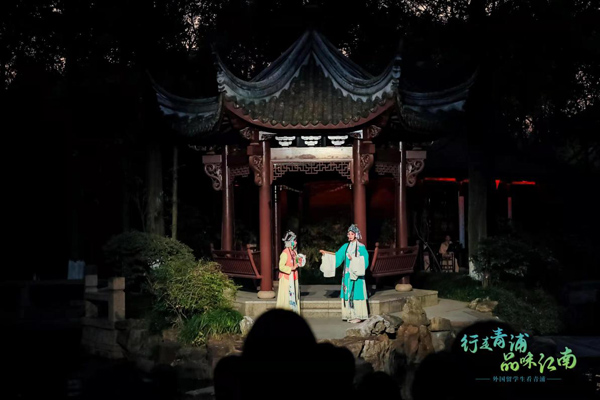 夕方になり、外國留學(xué)生たちは朱家角古鎮(zhèn)へと移動(dòng)し、中國初の実際の庭園で披露される昆曲「牡丹亭」を観賞し、中國伝統(tǒng)戯曲の魅力を肌で感じた。
