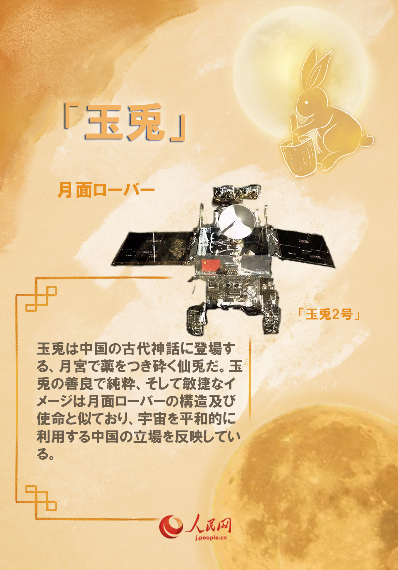 「玉兎號」は中國が設(shè)計(jì)?製造した月面ローバーで、月探査機(jī)「嫦娥3號」に搭載され、月面で探査を行った。玉兎號は2013年12月15日に嫦娥3號から出て、1973年のソ連の月面ローバー「ルノホート2號」以降、初めて月面を踏んだ自動運(yùn)転月面ローバーとなった。命名の際、「玉兎」の得票數(shù)が多くの候補(bǔ)名の中で最多になったのは、中國の古代神話のストーリーのおかげだろう。伝説では、嫦娥が月に昇る際に玉兎を抱えており、玉兎は月宮で嫦娥と常に寄り添っていたとされている。そのため月探査事業(yè)では「嫦娥」が月に著陸し、「玉兎」が寄り添っているのだ。