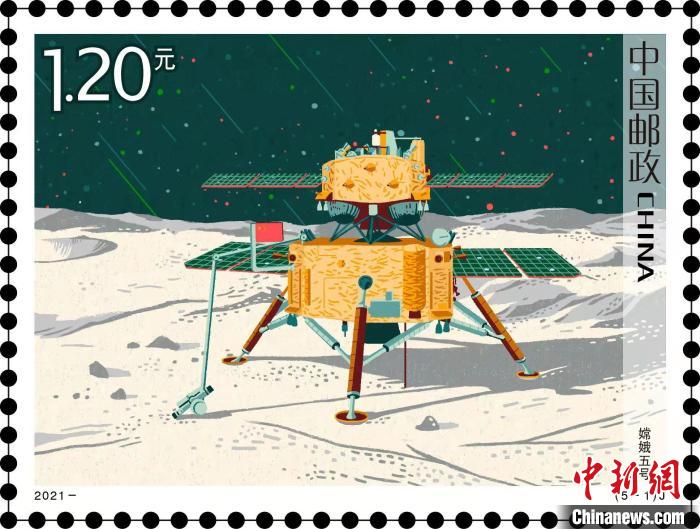 切手「嫦娥5號」のデザインは、月探査機「嫦娥5號」による初の無人月面サンプリングの作業(yè)シーンだ。中國で現(xiàn)在までで最も複雑かつ技術(shù)的な幅が最大の宇宙システム工學(xué)としての嫦娥5號の任務(wù)は、中國初の月面サンプリング?パッケージング、月面離陸、月周回軌道でのドッキング、サンプルリターンなど複數(shù)の重要なブレイクスルーの実現(xiàn)だ。その成功は中國の月探査プロジェクト「周回?著陸?帰還」3ステップ計畫の予定通りの完了を示している。
