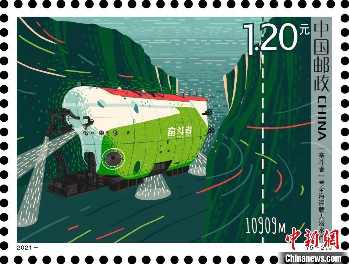 切手「深海有人潛水艇『奮闘者』號」のデザインは、中國初の全世界の海域への有人進(jìn)出能力を持つ重要裝備「奮闘者」號をメイン畫面にしている。「奮闘者」號は昨年11月にマリアナ海溝の水深1萬909メートルの海底に到達(dá)し、中國の有人深海潛水の記録を更新した。これは中國が深海有人潛水分野で世界トップ水準(zhǔn)に達(dá)したことを示している。
