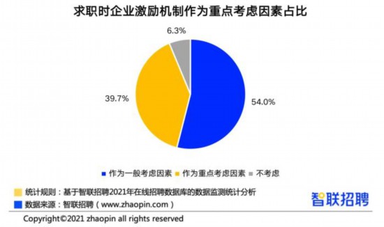 統(tǒng)計によると、労働者の93.7%が求職の際、企業(yè)のインセンティブ制度を「ある程度、または主に考慮する要素にする」と答えた?!钢鳏丝紤]する」だけを見ると39.7%だった。職級別に見ると、管理職の57.9%が「主に考慮する」と答えた。