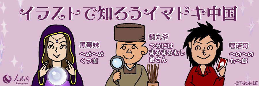 人民網(wǎng)ではもっと身近なスタイルで今どきの中國を読者の皆さんに知ってもらうため、「つるにはまるまるむし爺さん」と「へのへのもへ郎」、「へめへめくつ美」の3人が流行語やカルチャー、時事問題など幅広いジャンルにおける「イマドキ」を紹介。中國ってこんな國なんだ!と興味を抱き、理解を深めるきっかけにしてみてください。
