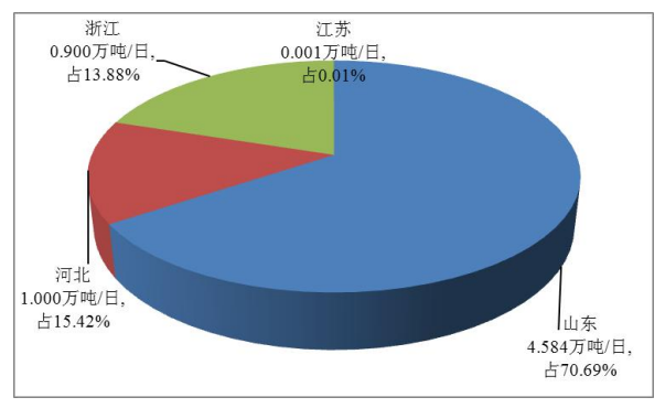 中國全土の沿岸部に位置する省?直轄市の既存の海水淡水化プロジェクトの規(guī)模の分布を示すグラフ。畫像出典:自然資源部公式サイト