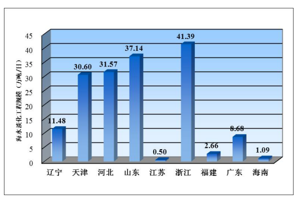 そのうち、海水淡水化の工業(yè)用水は主に沿岸部の北部、東部、南部海洋経済圏の電力、石油化學(xué)工業(yè)、鉄鋼などの水使用量の多い業(yè)界に集中している。海水淡水化の生活用水は離島地域と北部海洋経済圏の天津市と青島市に集中。