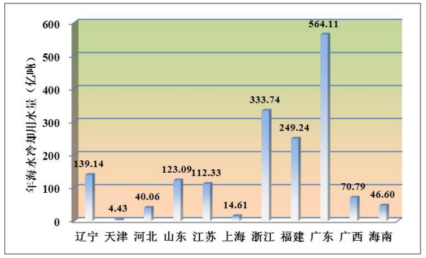 地域の分布狀況を見ると、遼寧省、天津市、河北省、山東省、江蘇省、上海市、浙江省、福建省、広東省、広西壯(チワン)族自治區(qū)、海南省の沿岸部の11の省?直轄市に海水冷卻プロジェクトが分布している。昨年は遼寧省、山東省、江蘇省、浙江省、福建省、広東省の年間海水冷卻水使用量が100億トンを超えた。