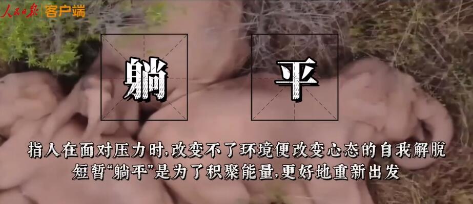 この言葉は、人がストレスなどに直面した際も、心を亂すことなく、進んで放棄し、なんの抵抗も行わないという意味で使われている。「寢そべり主義」はまた、中國の若者にとっての一種のストレスを解消し、メンタルを調(diào)整するスタイルとなっており、環(huán)境を変えることはできないため、自分の気持ちを整理してストレスから抜け出そうとする姿となっている。一時的に「寢そべる」ことで、パワーを充電し、また元気に新しい一日を始めることができる。
