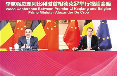 李克強(qiáng)総理は7日午後に中南海の紫光閣で、ベルギーのドゥ=クロー首相とテレビ會議の形式で會談を行った。
