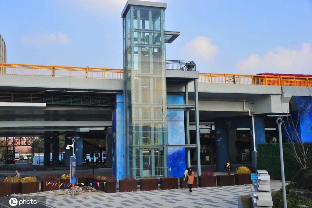 このほど完成した上海初の高架橋エレベーター(寫真著作権は東方ICが所有のため転載禁止)。