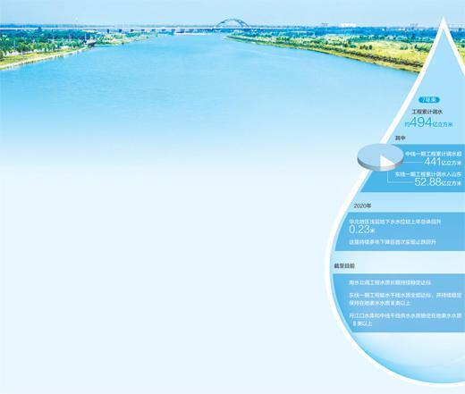 南方エリアの水がはるばる送られて來る北方エリアでは、水不足が効果的に解消されている。北京市市內(nèi)で現(xiàn)在供給されている水の7割以上が「南方エリア」から送られてきた水で、天津市の中心地で供給される水に至ってはほとんど全てが「南方エリア」から送られてきた水となっている。山東省では、「T」字型の水ネットワークが形成されている。このように、南水北調(diào)で調(diào)整された水は、北方エリアの大?中都市40都市の主な水源となっている。