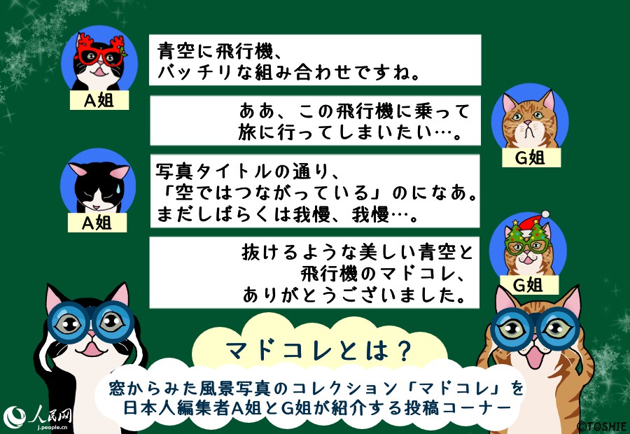 ウチのオフィスの窓からは、こんな風(fēng)景またはこんなモノが見(jiàn)えると自慢していただく「マドコレ(窓から見(jiàn)た風(fēng)景コレクション)」コーナー。どこまでも続く青い空や遠(yuǎn)くに見(jiàn)える山々といった自然の風(fēng)景から、オフィス街に建ち並ぶ高層ビルや幹線道路を走る車(chē)、庶民の暮らしが垣間見(jiàn)えるローカルな街並み、はたまた移動(dòng)中の車(chē)窓からの眺めなどなど、高さや場(chǎng)所も異なれば、その窓から眺める風(fēng)景も千差萬(wàn)別。中には仕事の意欲をアップさせてくれる元?dú)荬纬訾牍饩挨猡ⅳ欷?、疲れを癒してくれるほっこりした風(fēng)景も。そんな皆さまからお寄せいただいたマドコレの數(shù)々を、毎週火曜日に、人民網(wǎng)日本人編集者のA姐とG姐がコメントしながら、のんびり紹介していきます。