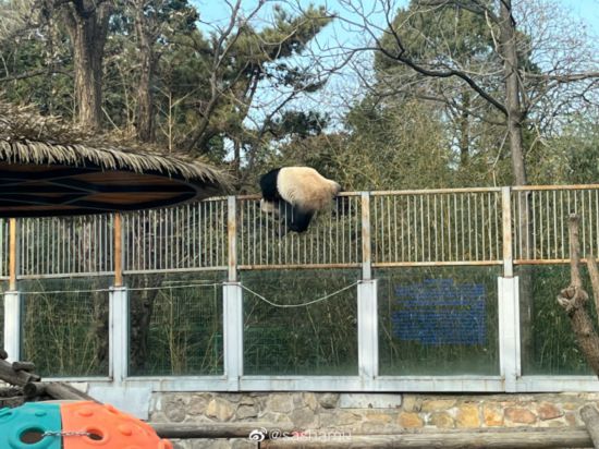 プクプクな割に身軽?パンダが柵越えして「脫走」 北京動(dòng)物園
