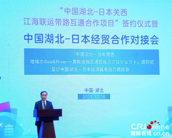 湖北省人民政府と日本國際貿(mào)易促進協(xié)會は「中國湖北-日本関西 地域のSer&River一貫輸送相互通航協(xié)力プロジェクト」に調(diào)印し、湖北省の企業(yè)と日本の企業(yè)が物流や貿(mào)易の面で協(xié)力することで合意した。ジェトロ(日本貿(mào)易振興機構(gòu))やホンダ、トヨタ、イオン、三井、三菱といった日本の主要な経済団體や企業(yè)の代表約300人が武漢でイベントに出席した。