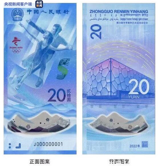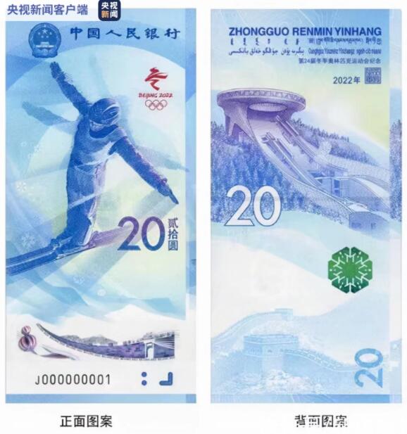 中國人民銀行(中央銀行)は21日、第24回冬季五輪の記念紙幣セットを発行した。これは同行初の記念紙幣セットとなる。氷上競技と雪上競技の紙幣それぞれ1枚の2枚1セットで、氷上競技はプラスチック製の紙幣、雪上競技は紙製の紙幣。いずれも額面は20元(約360円)、サイズは橫14.5センチメートル、縦7センチメートル。