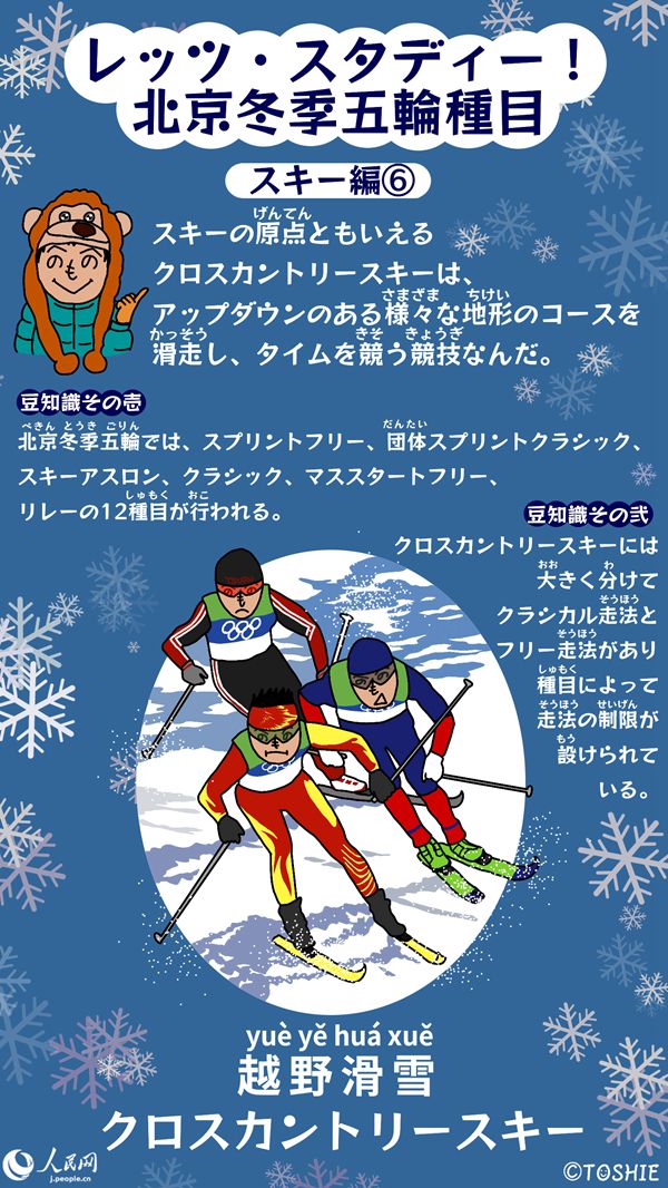 2022年2月4日から中國(guó)の北京で開催される北京冬季五輪。その開會(huì)に先立ち、人民網(wǎng)では冬季五輪の計(jì)7競(jìng)技と15種別を「イラストで知ろう!イマドキ中國(guó)」でおなじみのキャラたちが中國(guó)語(yǔ)と日本語(yǔ)で紹介。普段はあまり觸れることのないこうした競(jìng)技名などを観戦前に予習(xí)していこう!